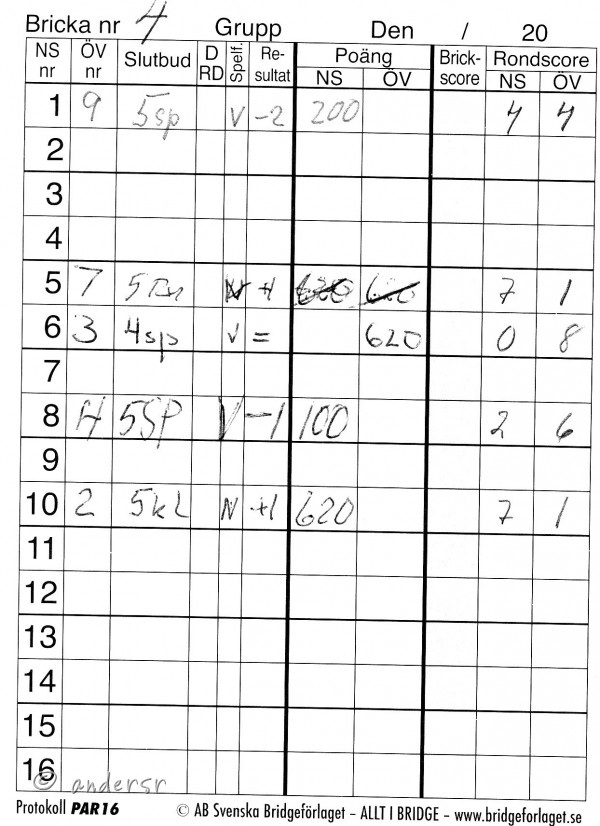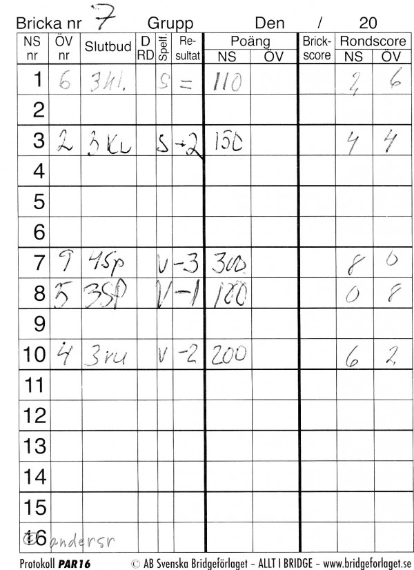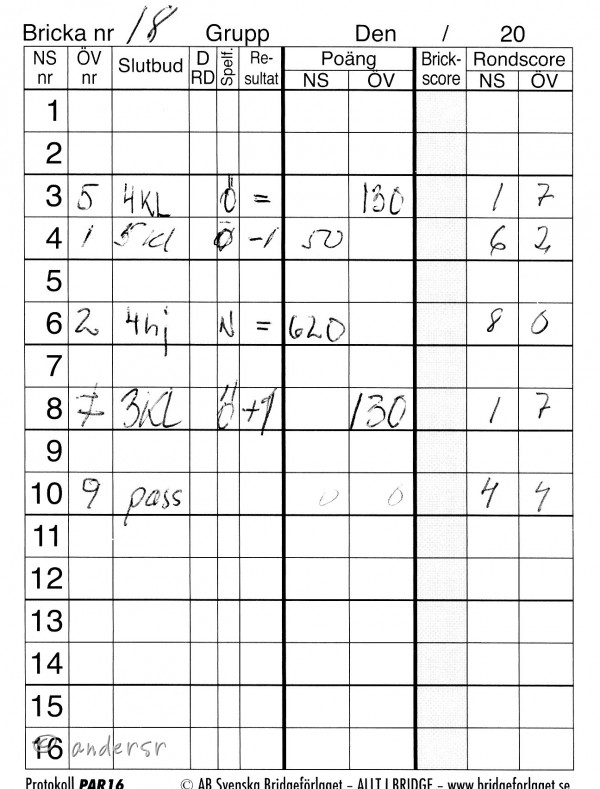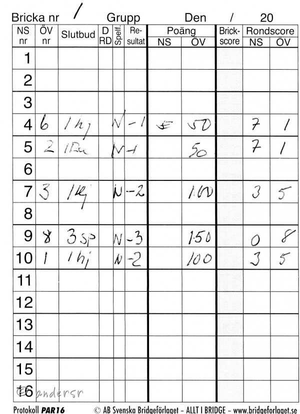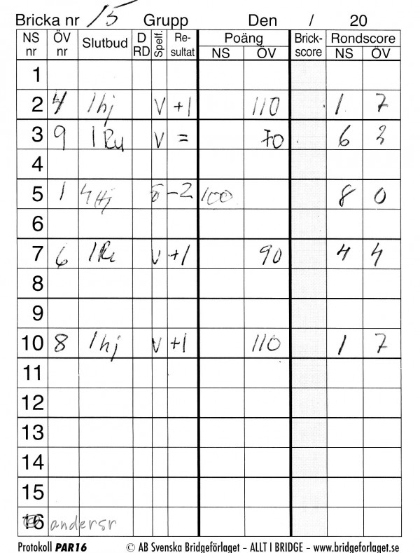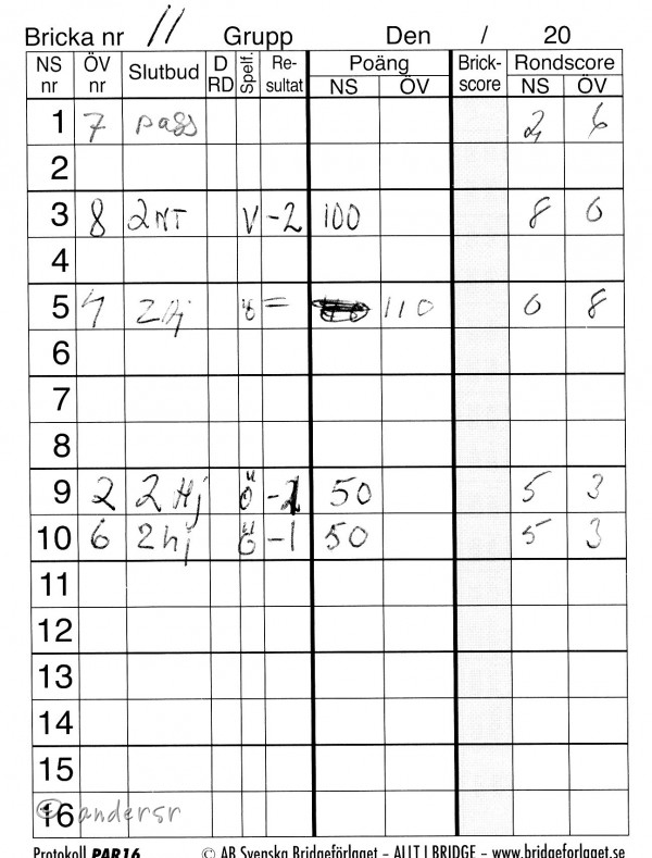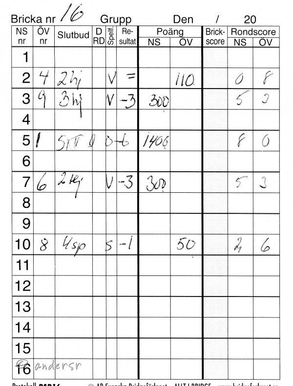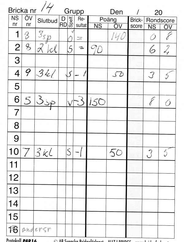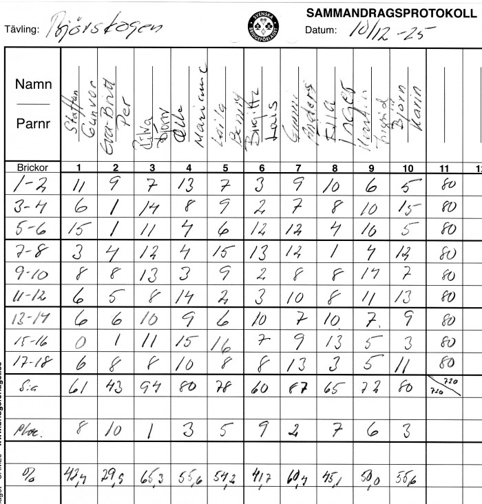 | 9. | Birgitta & Lars | 60 poäng | 41,7 % |