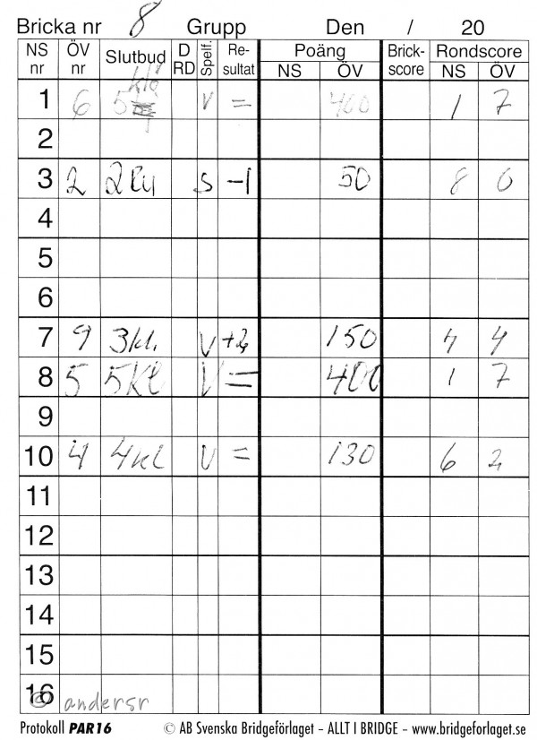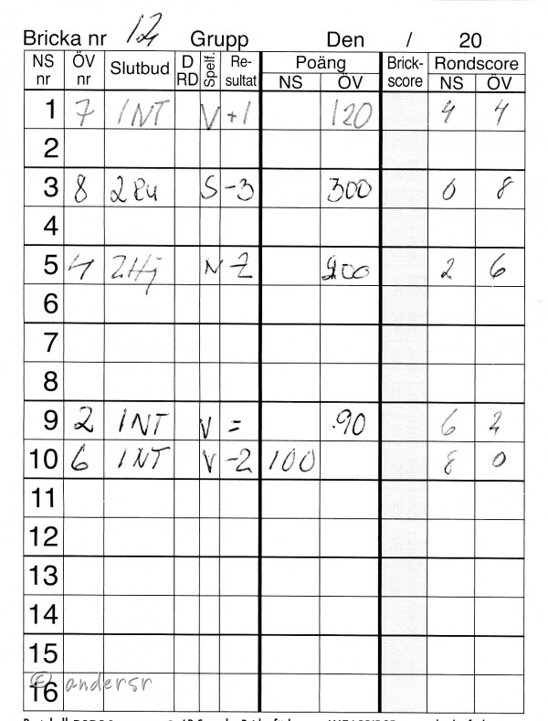 | 2. | Gunni & Anders | 87 poäng | 60,4 % |